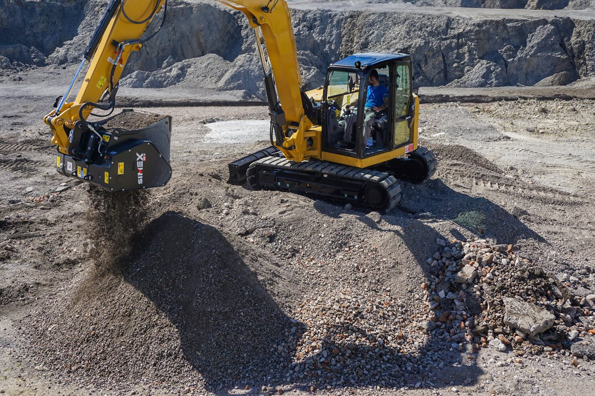 Proiectate pentru separarea materialelor de diferite dimensiuni pe șantier, cupele de ciuruire Simex sunt unice prin încărcarea ușoară, operarea extrem de simplă și productivitatea ridicată. Patentul exclusiv Simex permite ajustarea rapidă a dimensiunii materialului sortat în doar câteva secunde printr-un control din cabina operatorului."