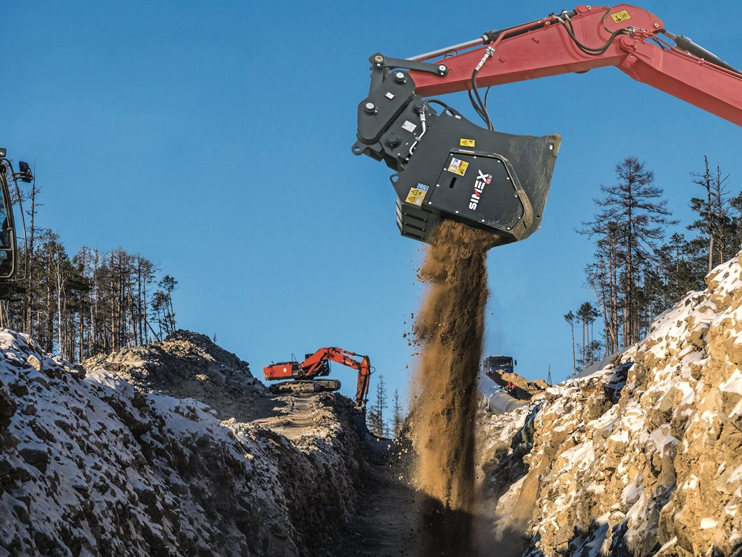 Proiectate pentru separarea materialelor de diferite dimensiuni pe șantier, cupele de ciuruire Simex sunt unice prin încărcarea ușoară, operarea extrem de simplă și productivitatea ridicată. Patentul exclusiv Simex permite ajustarea rapidă a dimensiunii materialului sortat în doar câteva secunde printr-un control din cabina operatorului."